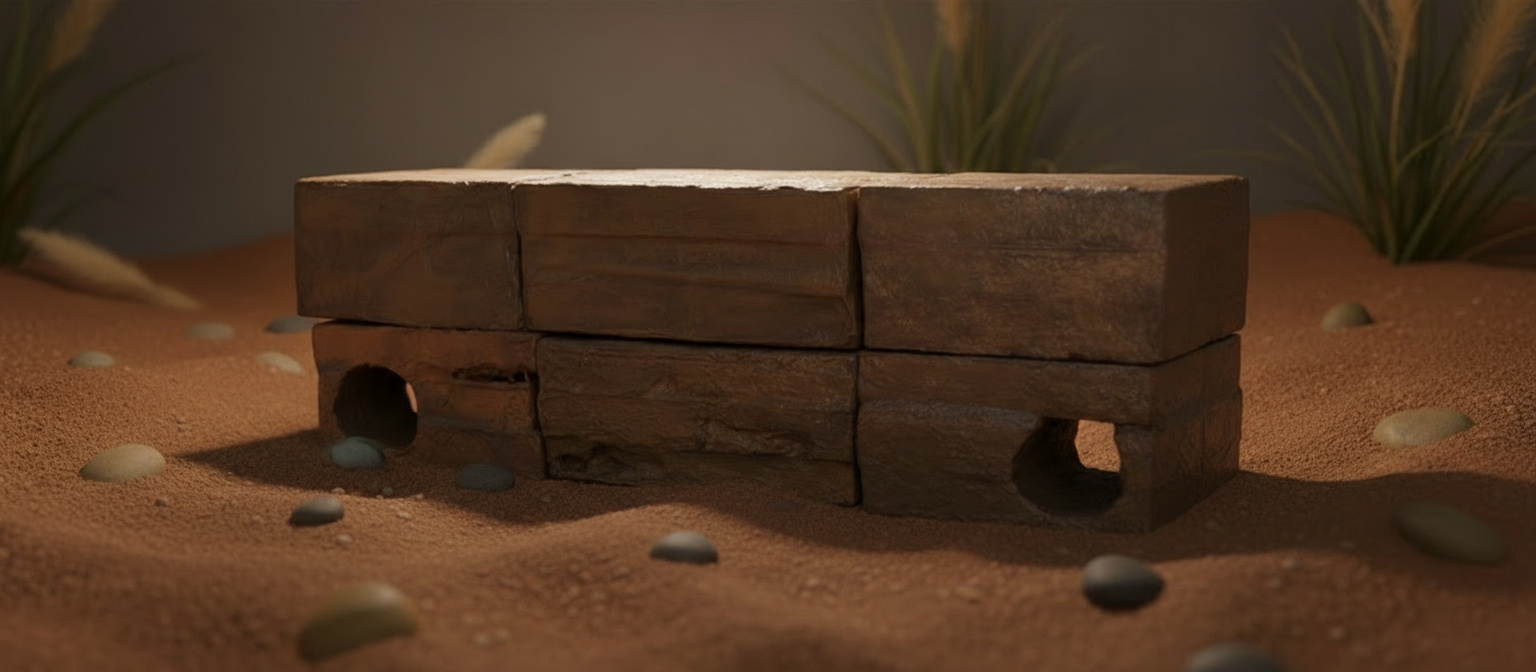 This block houses a three-inch tunnel lined with crushed volcanic basalt. The interior texture isn't decorative—it replicates what wild leopard geckos experience navigating Iranian rock formations.